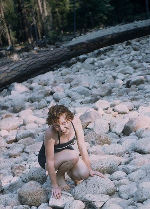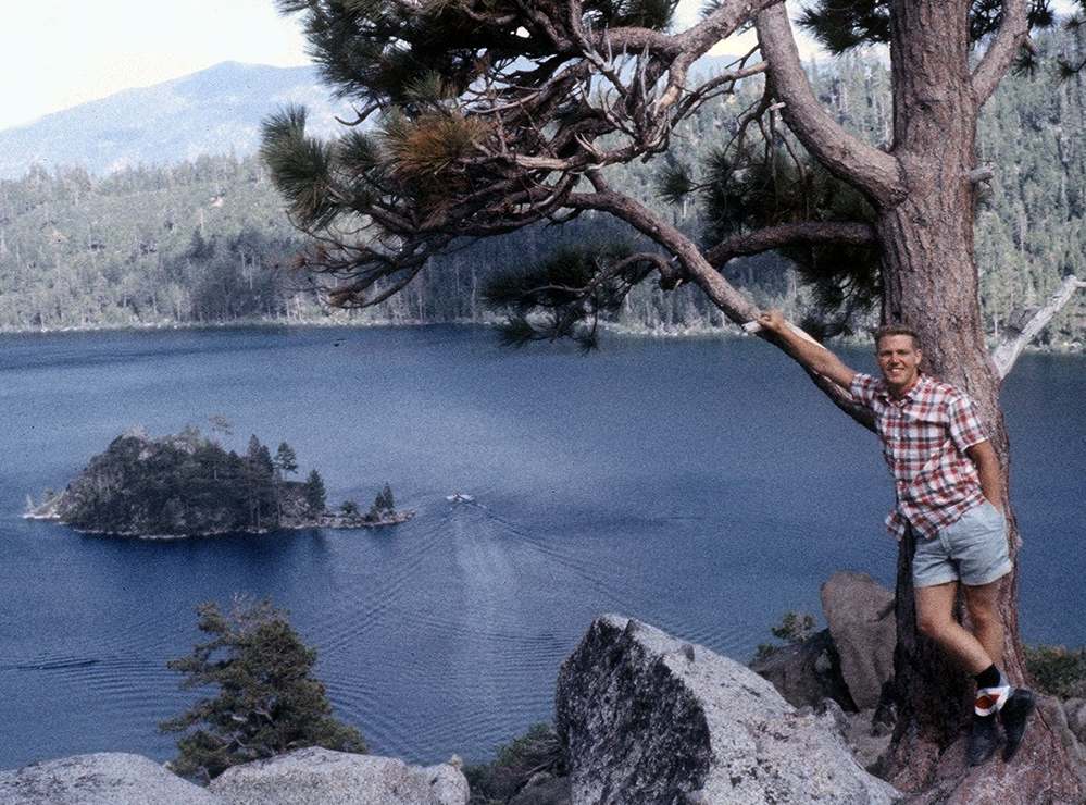 P) On June 28, 1958 they took a trip to Lake Tahoe. This is Ed at Emerald Bay