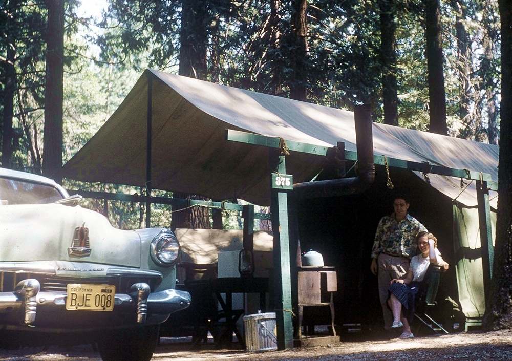 g) Housekeeping tent at Yosemite, September 1957, Honeymoon, on the way to Sacramento.
