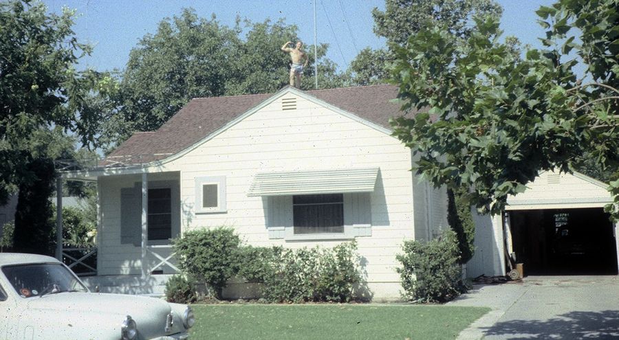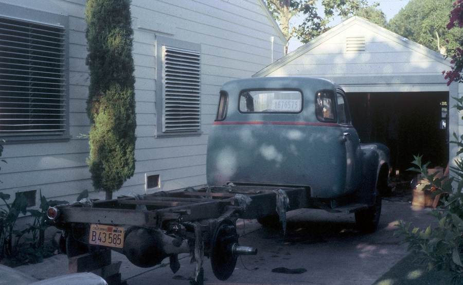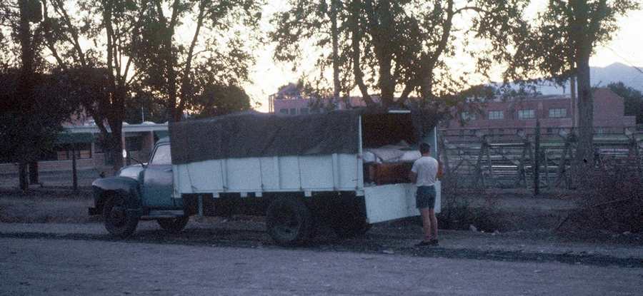 Ed Berry - Summer 1958 drive to New HampshireIn 1958 Ed enrolled at Dartmouth College in New Hampshire. Ed bought an old GMC truck for less than $100 (based on Google images, I estimate this was a 1947-1949 one-ton GMC) and fitted with a plywood camper shell, and had to fix a lot of things. Then he and his younger brother JK drove it from Sacramento to New Hampshire in the summer of 1958. I'm sure a few photos don't capture the entire experience. Here's the truck under construction at their house on 3824 La Soledad Way, near Oak Park, Sacramento. Those shutters on the windows were not to keep out burglars. They were to prevent Jay and Ed from breaking more windows when playing basketball on the driveway. The garage was an extension of the original garage which is in back of it. There was no room to expand the garage sideways so my grandfather expanded it front ways.