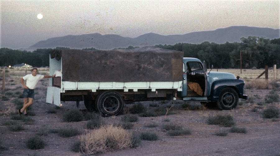This is an apparent time-exposure in moonlight of Ed with the truck