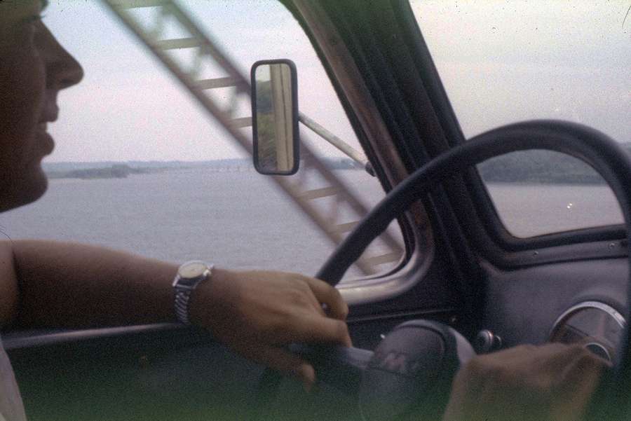 JK driving the truck across the Mississippi River