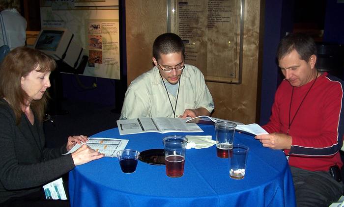 Vicki, Joshua and Kim study tomorrow's sessions