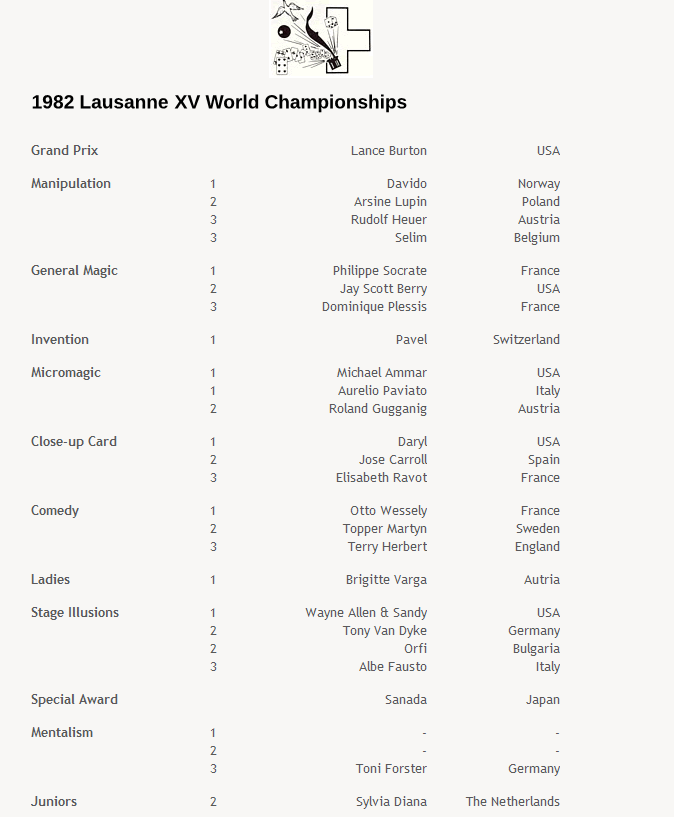 5. Lausanne - Jay in FISMThe only reason I was in Switzerland is because Jay had invited me to come and see him in FISM (Fédération International Société de Magie) competition. I had the $120 conference badge allowing me to come and go as I pleased. I got to see Jay preparing back stage, but I only watched a few of the shows. Jay's was the best, but it seems for political reasons they did not want him to win. Lance Burton www.lanceburton.com also had a good show, but to me it was too slow. In any event Lance took the grand prix and went on to become a famous full-time act in Las Vegas.