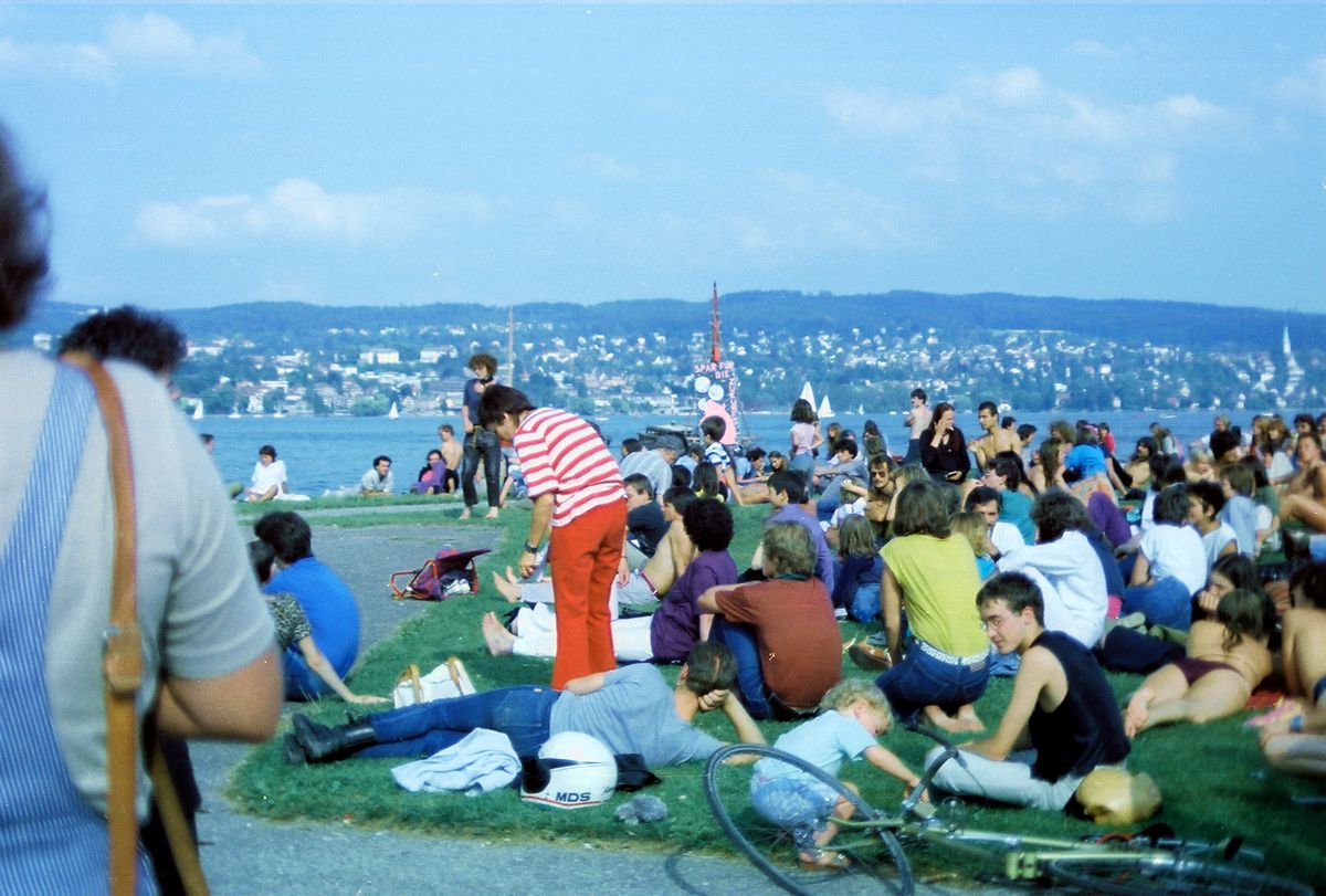 2. ZurichIn contrast with the stop-over in New York, the Zurich airport was green and clean. My goal was to make my way to the youth hostel. This was my first moment alone in a country that I did not speak the language, and I did not know how to get into town. The Information booth in the airport told me to "take the train." Train? where? Down the escalator into a tram that brought me near the town. At the transfer I had no Swiss change and could not figure out how to buy a bus ticket from the vending machine. The girls (Swiss girls, of course) used their own money to by me a ticket. There was some event in the park that I hung out at - photos below. Then I made my way to the hostel in the guide book at Mutschellenstrasse 114, the same hostel as today in 2011 - photos from www.youthhostel.ch/en/hostels/zurich/ :